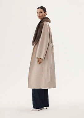 Кашемировое пальто из 100% двойного кашемира с цельным английским воротником из натурального меха соболя.