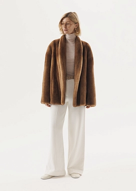 Новая модель норковой шубы, объединившая лучшее от культовых моделей бренда — роскошный мех аукционной коротковорсовой норки в редком золотисто-карамельном оттенке.