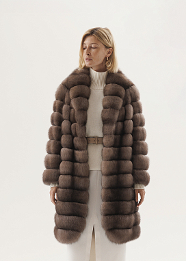 Шуба из меха баргузинского соболя с эффектной горизонтальной раскладкой меха.