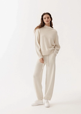Кашемировые брюки из кашемировой пряжи в нежном молочном оттенке.