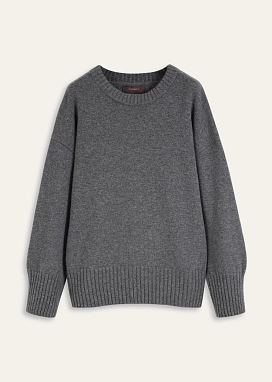 Кашемировый джемпер свободного силуэта с изящной спущенной линией плеча дополнен элегантным круглым воротом.